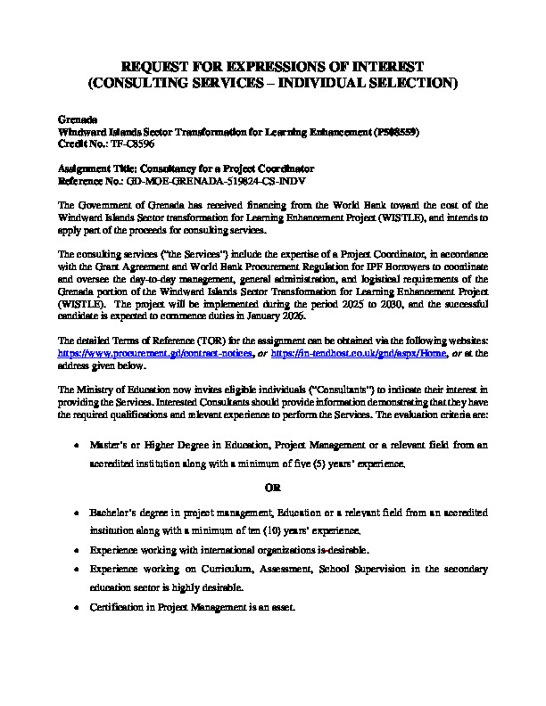 The Government Information Service (GIS) of Grenada invites applications from suitably qualified individuals, both internal and external to the Public Service, to fill the following vacancies. We are seeking dynamic, dedicated, and skilled professionals to join our team in delivering timely, accurate, and impactful communication for the Government of Grenada.