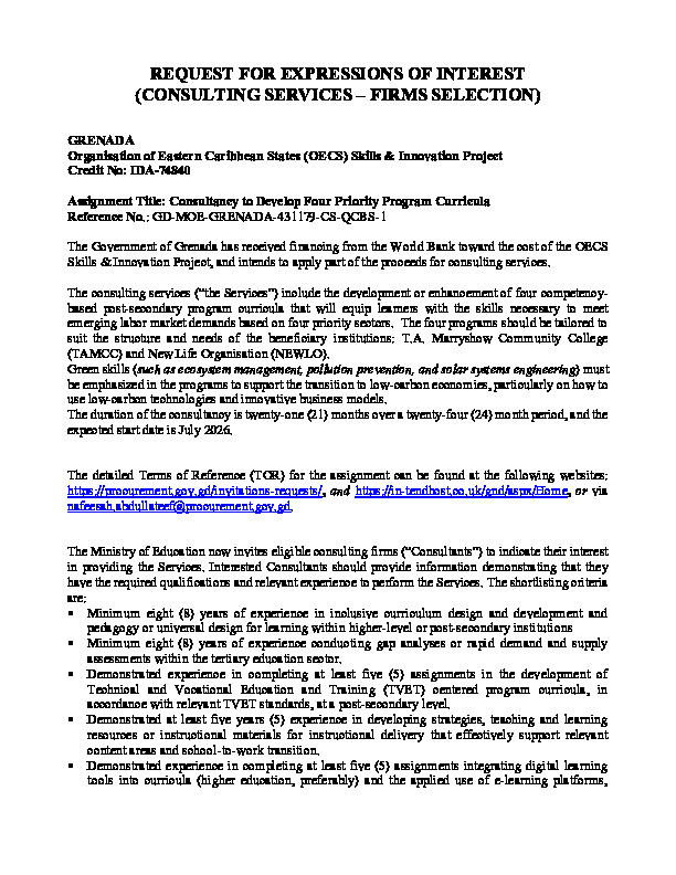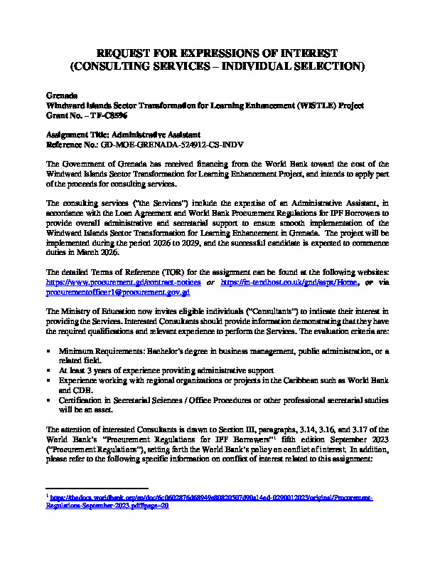 The objective of the consultancy is to engage an individual consultant to provide continuous engagement with the rural communities, farmers’ associations, male and female farmers, and youth, in relation to the design, development, operation, management and monitoring of the climate smart irrigation facilities and farm access roads under the Rural Development Unit. The duration of the assignment is expected to be for a period of twelve (12) months.